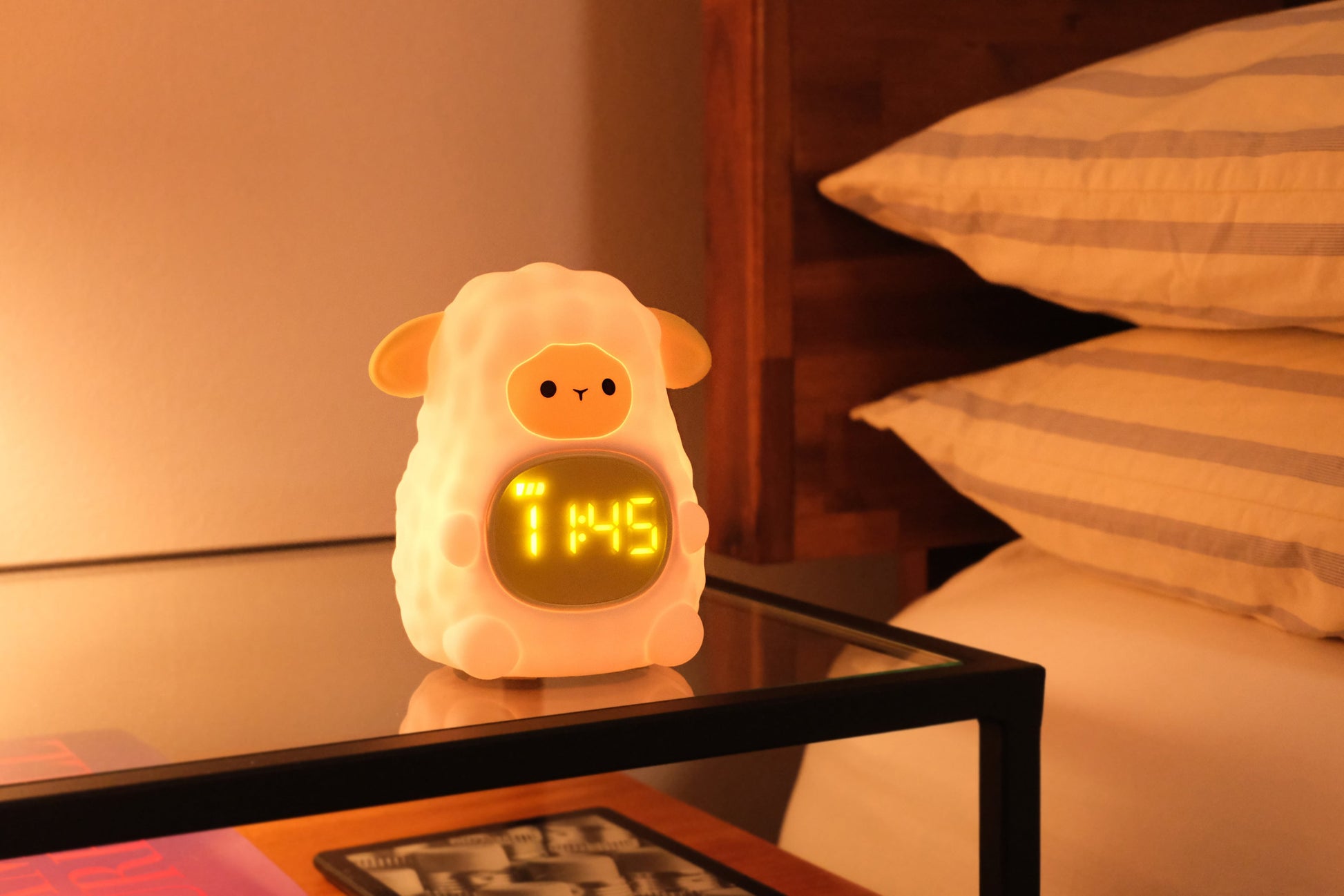 Featuring a calming night light, built-in sleep sounds (including white noise), and a USB-rechargeable design, this lamb-shaped clock encourages healthy sleep routines with a comforting presence. Use it as a sleep trainer, alarm, or cozy night lamp. It’s the perfect mix of cute and practical.